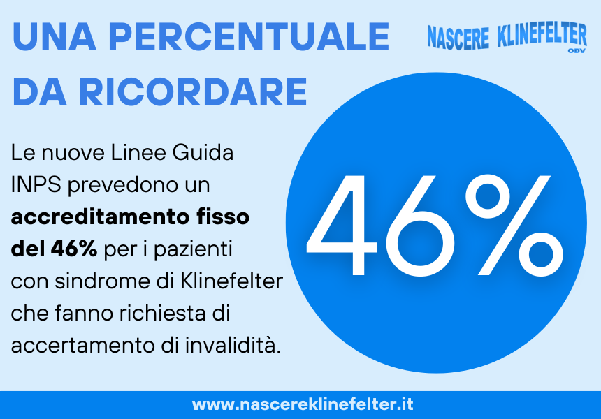 Nuove linee guida INPS: 46% di invalidità civile per sindrome di Klinefelter