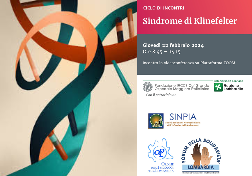 09 Febbraio 2024La Fondazione IRCCS Ca' Granda Ospedale Maggiore Policlinico di Milano organizza una giornata di formazione online gratuita, dal titolo: "Ciclo di incontri. Sindrome di Klinefelter."
