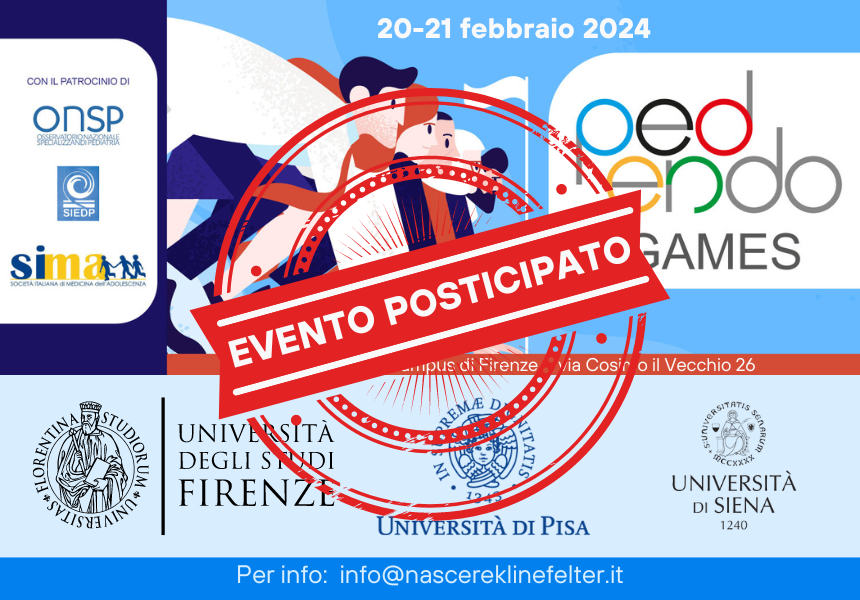 Purtroppo, a causa di motivi organizzativi e per la scarsa adesione, gli organizzatori hanno deciso di rimandare l’Evento c/o il Meyer di Firenze sulle s. di Turner e Klinefelter e la discussione con...